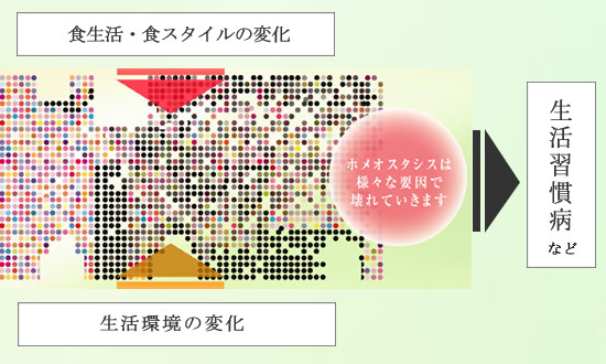 ところが経済が成長し、文明や技術が進歩した現代の生活では、多くのひとが、恒常性のバランスを崩しています。