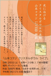 繊細で純粋な響きのクリスタルボウルと、時空間を越えて行く言葉の交差から、目に見えない世界が立ち上がる。消えて行く音の先にある無音界を訪れるとき、自分が溶けて行き、未知の何かに出会う束の間の旅を共有するアートラボラトリー。