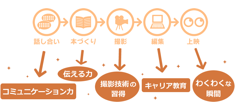 ときには意見が分かれて言い合いになるかもしれないし、撮る側、撮られる側のタイミングや、音声どりなど、チームプレーも求められる。その過程にはいつもコミュニケーションが必要で、伝える力が養われていく。